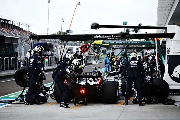 4. sıradaki Sergio Perez (Red Bull), ilk 3'teki Verstappen, Leclerc ve Carlos Sainz'dan (Ferrari) farklı olarak lastik değiştirmeyi tercih etti.