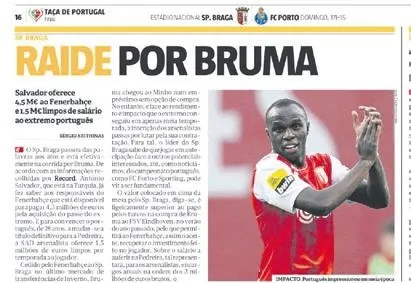 Portekiz basınından Record'un haberine göre; Braga'da Başkan Salvador, Bruma transferini bitirmek için İstanbul'a geldi ve ilk teklifini yaptı. Portekiz temsilcisinin başkanının 28 yaşındaki oyuncu için Fenerbahçe'ye 4.5 milyon Euro teklif ettiği iddia edildi. Braga'nın Bruma'ya da yıllık 1.5 milyon Euro'luk maaş teklifinde bulunduğu ileri sürüldü.
