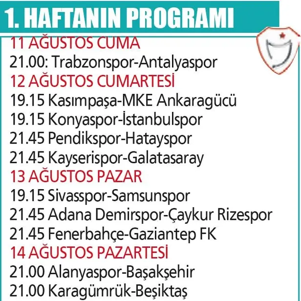 Trendyol Süper Lig, 11 Ağustos Cuma günü Trabzonspor-Antalyaspor maçıyla saat 21.00'da başlayacak. Program, Türkiye'yi Avrupa'da temsil eden takımların bu kulvardaki muhtemel müsabaka tarihleri de dikkate alınarak belirlendi.