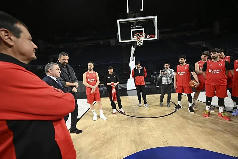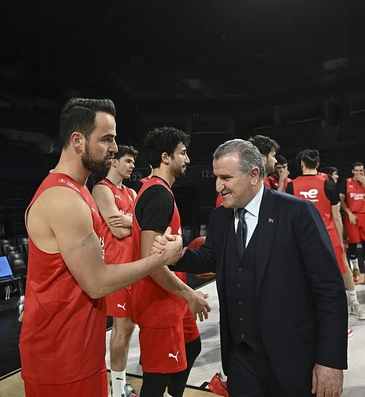 Gençlik ve Spor Bakanı Osman Aşkın Bak, FIBA 2025 Avrupa Basketbol Şampiyonası Elemeleri'nde yarın İtalya ile karşılaşacak olan A Milli Erkek Takımı'nın antrenmanını izledi.