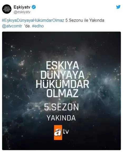 Eşkıya Dünyaya Hükümdar Olmaz'ın 5. sezon çekimleri yakın zamanda başladı. Dizinin yeni sezonunun 2-3 hafta içerisinde yayında olması bekleniyor.