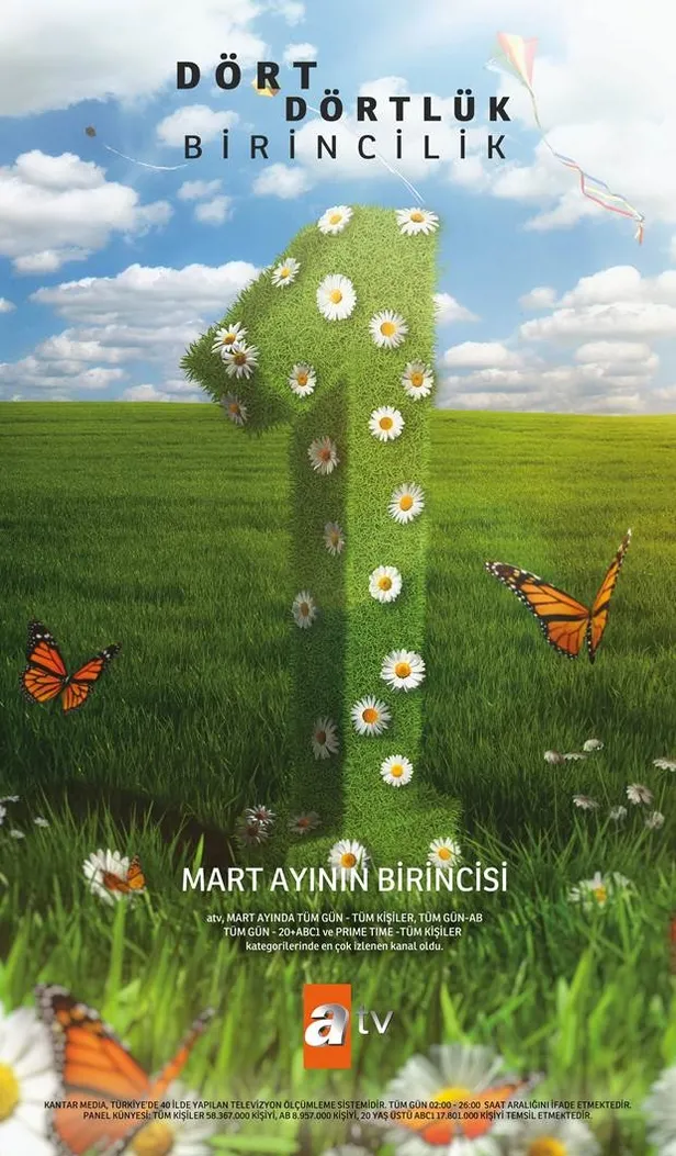 Reyting rekorları kıran dizi ve programlarıyla yılların birincisi olan Atv, Mart ayında da Tüm Gün – Tüm Kişiler, Tüm Gün – AB, Tüm Gün – 20+ ABC1 ve Prime Time – Tüm Kişiler kategorilerinde aldığı izlenme oranlarıyla rakiplerine fark atarak zirvede tek başına yer aldı.