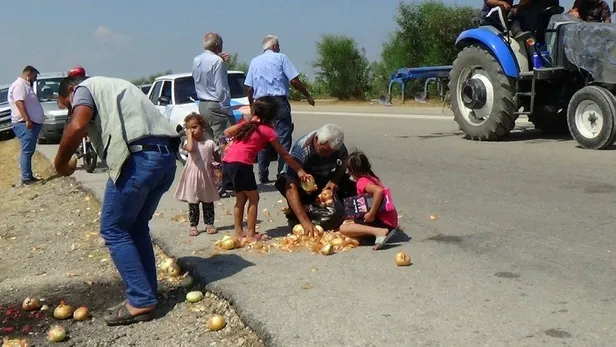 Akşener daha sonra bölgeden ayrıldıktan sonra çiftçi para etmediği gerekçesiyle döktüğü soğanları geri yerden topladı.