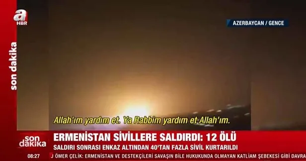 Azerbaycan'ın Gence kentine, Ermenistan tarafından düzenlenen saldırı anları bir kişinin telefon kamerasına yansıdı. Füzelerin düşüş anını kaydeden bir kadının, "Allahım yardım et" diye dua etmesi dikkatlerden kaçmadı.