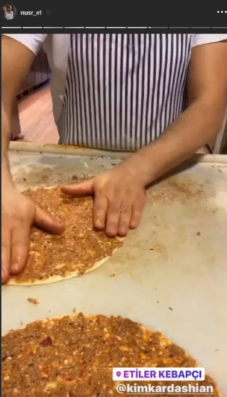 Sosyete etçisi Nusret Gökçe de sosyal medya hesabından yaptığı paylaşımla dünyaca ünlü yıldıza tepki göstermişti. Etiler'deki restoranında lahmacun yaptığı anları yayınlayan Nusret, Kardashian'ı etiketleyerek göndermede bulunmuştu.