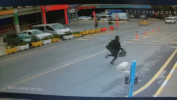 Öte yandan şüphelilerin para dolu çantayla kaçma anı sanayi sitesinin güvenlik kameralarına saniye saniye yansıdı.
