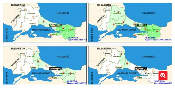 Yapılan son değerlendirmelere göre, Marmara'nın kuzey ve doğusu, Karadeniz, Akdeniz'in Toroslar mevkii ile Kütahya, Adana'nın iç kesimleri, Osmaniye, Ankara'nın batısı, Eskişehir, Çankırı ve Ardahan çevrelerinin sağanak ve gök gürültülü sağanak yağışlı, diğer yerlerin az bulutlu ve açık geçeceği tahmin ediliyor. Yağışların Kocaeli, Sakarya, Düzce, Zonguldak ve Bartın çevrelerinde yerel olarak kuvvetli (21-50 kg/m2) olması bekleniyor.