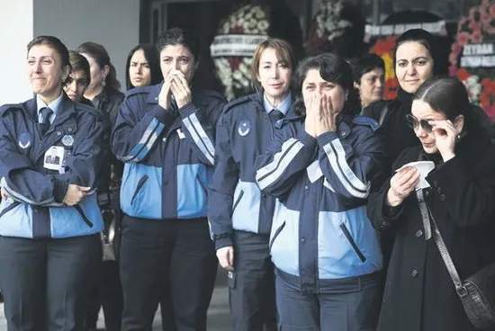 Cenazede Aydoğdu ve Aykan'ın mesai Cengiz Aydoğdu Habil Aykan arkadaşları gözyaşlarını tutamadı.
