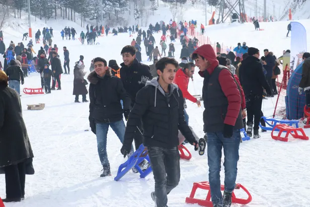 En uzunu 14 kilometre olmak üzere 40'ın üzerinde pistten aynı anda 20 bin kişinin yararlanabildiği Palandöken'de, kayak ve snowboard yapmasını bilmeyenler de acemi pistinde kızakla kayarak tatilin keyfini çıkarıyor.