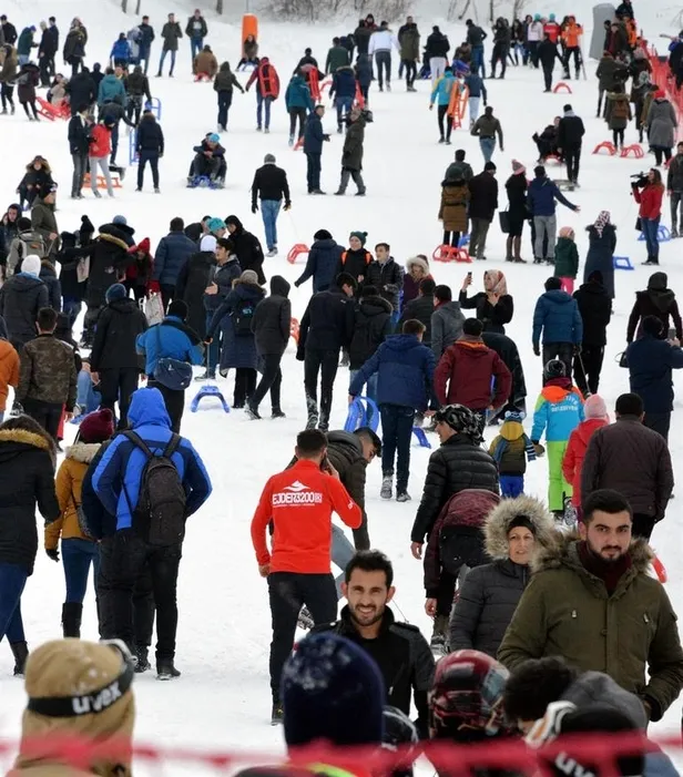 Kış turizminin göz bebeği Palandöken özellikle hafta sonları dolup taştı. Kızak ve kayak pistlerinde ’İğne atsan yere düşmeyecek’ dedirten görüntüler ortaya çıktı. Otellerdeki dolululuk oranı yüzde 90’lara ulaştı. Yerli ve yabancı turistler kayak yaparak tatilin tadını çıkarıyor.