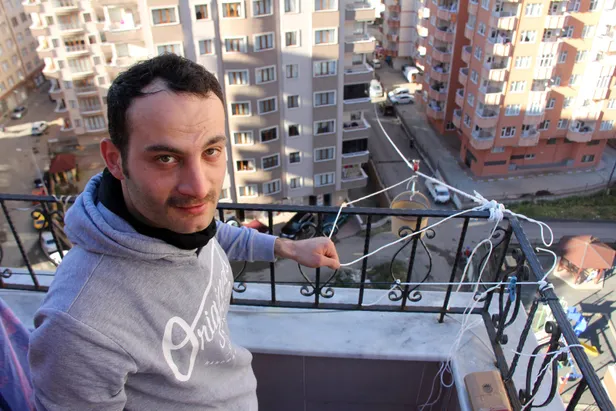 Birbirinden ilginç icatları ile tarihe geçen Rizelilerden son bir hamle daha geldi. Bu kez de üşengeç bir Rizeli evinin balkonuna 200 metrelik bir ilkel 'teleferik' kurdu.. Evinin yolunun rampa olduğunu ifade eden Gökdemir, 'Ayrıca binada asansör yok. İşten yorgun geliyorum. İn çık zor oluyor. Daha çok yoruluyorum. Artık 5 kat inip çıkmıyorum. Benim için de rahat oldu.' dedi.