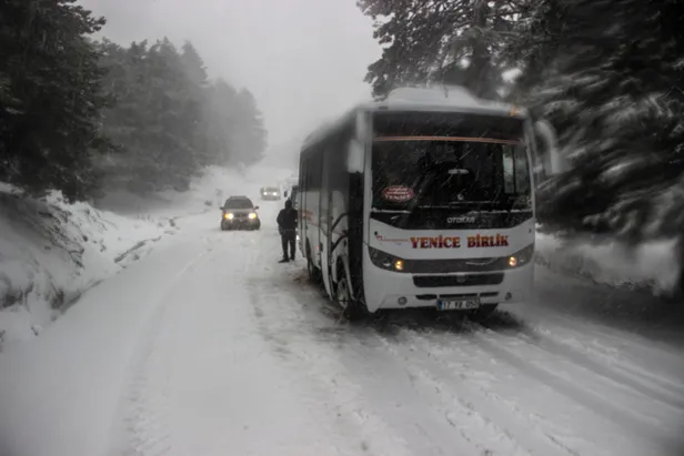 Kar yağışı nedeniyle sabah saatlerinde yol zaman zaman trafiğe kapandı. Bir çok araç yolda ilerleyemeyince beklemek zorunda kaldı.