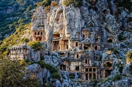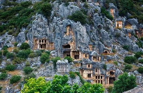 Likyalıların ahşap ev mimarisinin kaya mezarlarına en iyi uyarlanmış örnekleri olan Myra mezarlarının içinde, ölüyü ve yakınlarını betimleyen kabartmalı mezar, en ilginç örneklerden biridir. Ayrıca yine kabartmalı veya kitabeli birçok kaya mezarı, kayalığın güneye bakan yüzünde üst üste veya yan yana sıralanmaktadır. Tiyatro yakınındaki şehir merkezine giderken yolun solundaki hamam kalıntıları ise Roma Dönemi tuğla mimarisinin erken ve ilginç örneklerini oluştururlar. Şehrin su ihtiyacı, Demre Çayının aktığı vadi kenarındaki kayaya oyulmuş kanallarla karşılanmaktaydı. Likya konfederasyonunda 3 oy hakkına sahip 6 şehirden biri olan Myra'nın "En parlak kent" unvanıyla anılması ne denli önemli bir kent olduğunu göstermektedir. Myra'nın Likya konfederasyonuna ait sikkelerin yanında kendi adıyla basılmış sikkelerinde, şehrin ana tanrıçası Artemis'in Anadolu'nun en eski tanrıçası Kybele formunda temsil edilmiş olması ayrı bir önem taşımaktadır. İ.S. 5.yy.da Likya eyaletinin başkenti olan Myra'nın, St. Paul ve arkadaşlarının uğradıkları şehir olması Hıristiyanlıkça da özel bir önem taşımaktadır. (Kaynakça: "Myra" Dünden Bugüne Antalya (II. Cilt), Antalya İl Kültür ve Turizm Müdürlüğü, 2012, Antalya, s.202.)