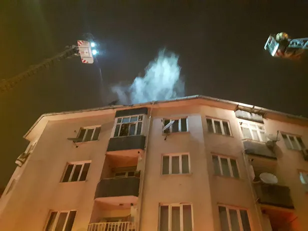 4 katlı binanın çatısı yandı, imam camiden anons yaptı