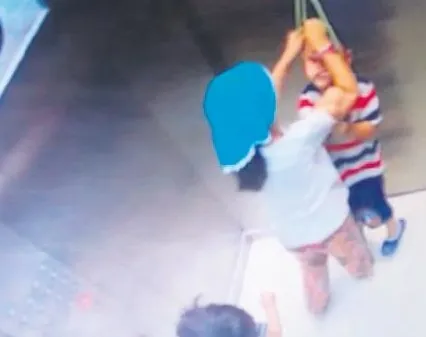 Durumu fark eden abla, asansörü durdurmaya çalıştı.