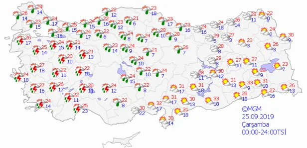 Meteoroloji'den sağanak uyarısı! Yarın hava nasıl olacak? İşte 25 Eylül Türkiye geneli hava durumu