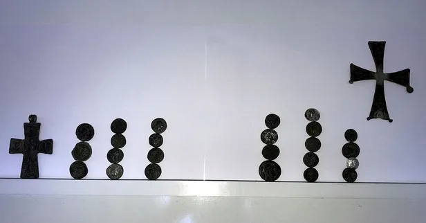 Araçta yapılan aramada 24 sikke ve 2 haç bulundu. Haç ve sikkeler incelenmek üzere Müze Müdürlüğü'ne teslim edildi, sürücü H.Ç. gözaltına alındı.