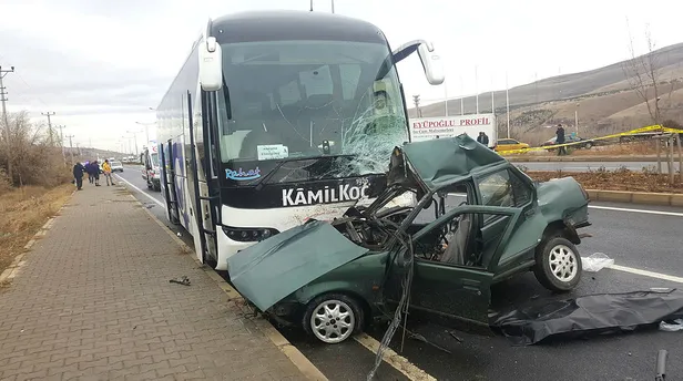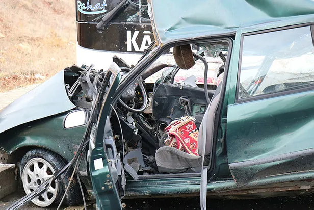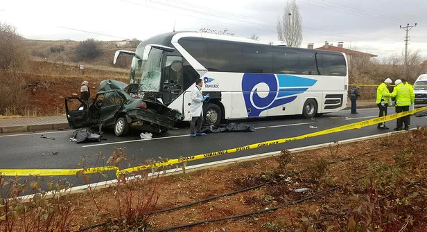 Kaza, saat 10.30 sıralarında Kırşehir merkeze bağlı Özbağ beldesi Erevik yolunda meydana geldi. Mustafa Köseoğlu (39) yönetimindeki 38 H 2600 plakalı Kamil Koç firmasına ait yolcu otobüsü, kavşakta Hacı Salih Çiçek'in kullandığı 40 AK 547 plakalı otomobil ile çarpıştı. Otobüsün önünde metrelerce sürüklenen otomobil hurda yığınına döndü.