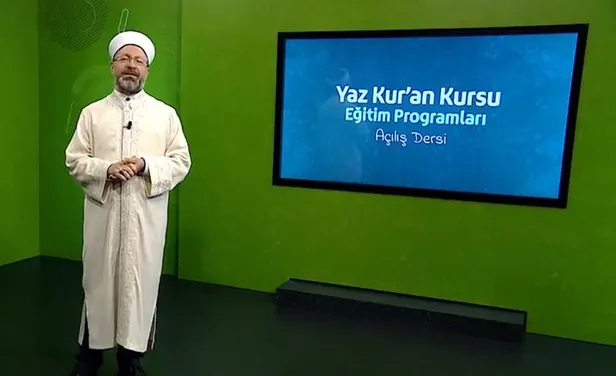Son dakika haberi... Diyanet İşleri Başkanı Ali Erbaş, Diyanet TV üzerinden yaz Kur'an kursu eğitimi verileceğini duyurdu. Erbaş, ilk dersin 29 Haziran Pazartesi günü saat 10.30'da başlayacağını açıkladı. Diyanet TV yayın akışı içerisinde Kur'an öğreniyorum, Dinimi öğreniyorum ve Kur'an okuyorum olmak üzere hafta içi her gün 3 eğitimin olacağını duyuran Diyanet İşleri Başkanlığı, bu eğitimlerin tekrar yayınları ile Youtube üzerinden de takip edilebileceğini duyurdu. Peki Diyanet TV üzerinden yaz Kur'an kursu eğitiminden nasıl yararlanılır? İşte, TRT Diyanet TV yaz Kur'an kursu canlı yayını ve ders programı hakkında detaylı bilgiler.