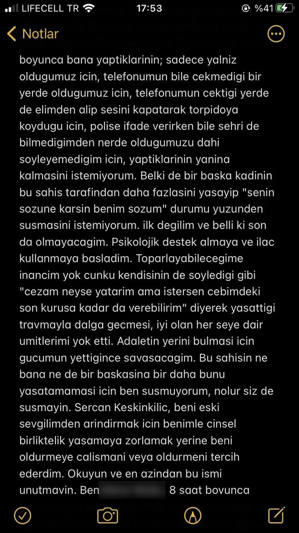 Sabah'ın aktardığına göre, Emniyet Genel Müdürlüğü İstihbarat Başkanlığı Bilişim Suçları İstihbaratı Şube Müdürlüğü'nün, sosyal paylaşım sitesinde "cinsel saldırı" paylaşımında bulunduğu iddia edilen Sercan Keskinkılıç hakkında çalışmada bulunduğu öğrenildi.
