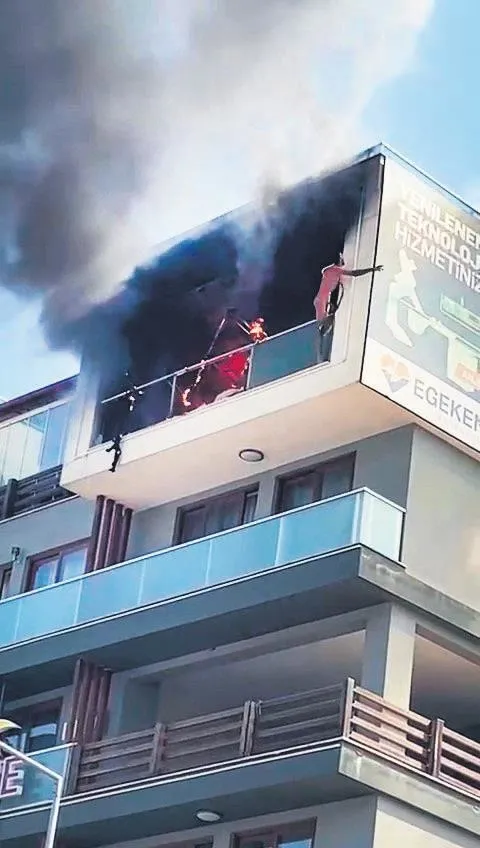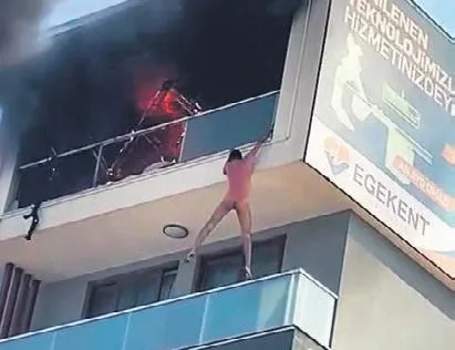 Bir süre sonra alevler, balkona kadar ulaştı. Ölümle burun buruna gelen Erdurur, tutuşan kıyafetlerini çıkardıktan sonra alt kat balkonuna sarktı.