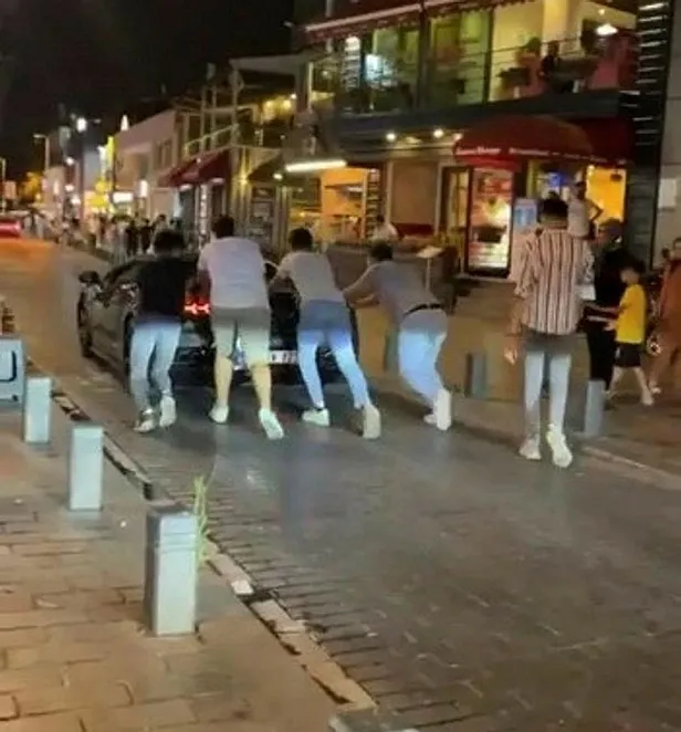 İlginç olaya ilişkin konuşan çevre esnafından Mehmet Acabey ise, "İlk başta hız yapacak, şaka yapıyorlar zannettim. Gençlerin bir süre uğraştığını görünce gerçek olduğunu anladım. Sanırım araç elektrik arızası vermişti.