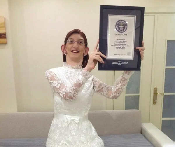 Karabük'ün Safranbolu ilçesinde yaşayan Rümeysa Gelgi, 2 metre 15 santimetrelik boyuyla dünyanın en uzun boylu kadını olarak Guinness Rekorlar Kitabı'na girdi.