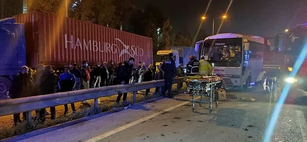 Son dakika haberi... Kocaeli'nin Dilovası ilçesi D-100 Karayolu'nda iki işçi servisinin çarpışması sonucu 10 kişi yaralandı. Ekipler, servisin içinde sıkışan sürücüyü kurtarabilmek için zamanla yarıştı.