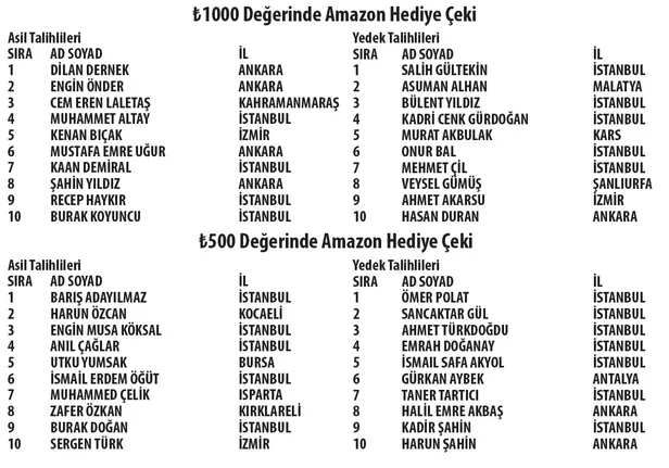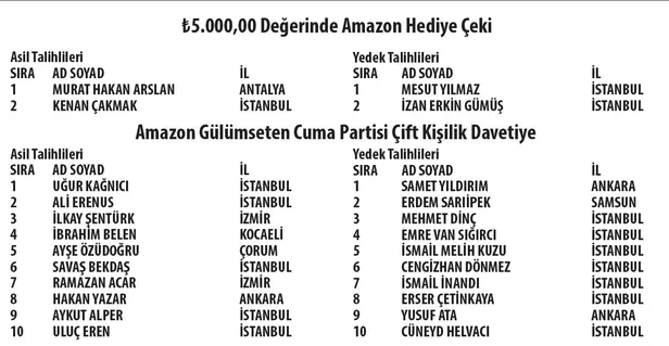 İşte Amazon gülümseten cuma kampanyası çekilişi sonuçları.