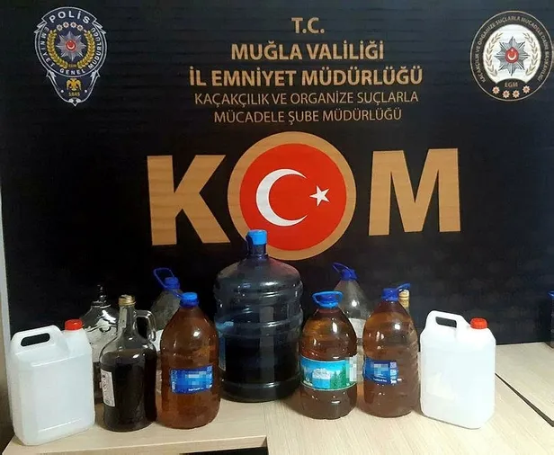Muğla İl Emniyet Müdürlüğü Kaçakçılık ve Organize Suçlarla Şubesi ekipleri, 24 Aralık-2 Ocak tarihleri arasında kaçak ve sahte içki satışının önlenmesine yönelik operasyonlar gerçekleştirdi. Ev, iş yerleri ve eğlence mekanlarındaki operasyonlarda, sahte olduğu belirlenen çeşitli türlerde 446 litre içki, 15 şişe sahte içki, 6 şişe gümrük kaçağı alkollü içki, alkol damıtma cihazı, 5 litre etil alkol, içki yapımında kullanılan 12 kit, 2 ruhsatsız tabanca, 27 fişek, 3 bin 800 içi dolu makaron, 25 elektronik sigara likidi, 21 senet, 2 sahte çalışma ruhsatı, 585 sahte 200 liralık banknot, 513 sahte 100 liralık banknot, 213 sahte 50 liralık banknot, sahte 50 dolar, suçtan elde edildiği değerlendirilen 200 bin lira ile 39 bin 429 euro ele geçirildi.