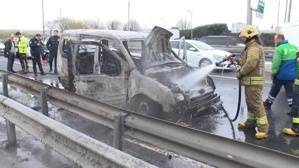 Bahçelievler D-100'de seyir halindeki otomobil alev alev yandı