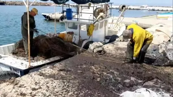 Saros Körfezi'nde ağlarını toplayan balıkçılar karşılaştıkları görüntü karşısında endişe duymaya başladı.