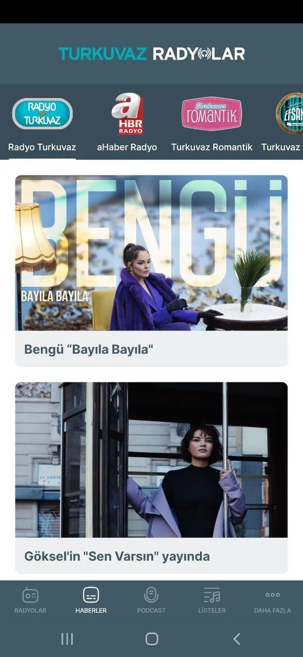 Turkuvaz Radyolar uygulamasında, haberler, podcastler ve özel olarak hazırlanmış listeler bulunuyor.