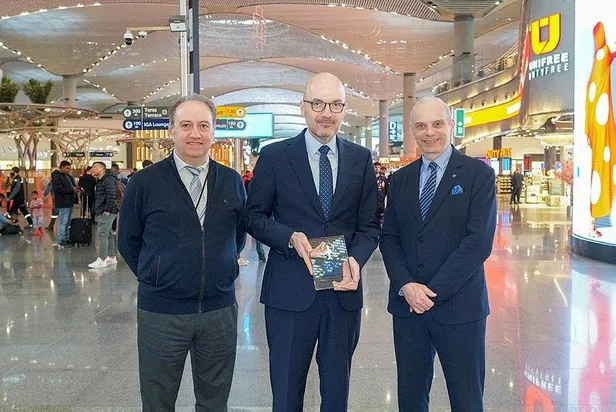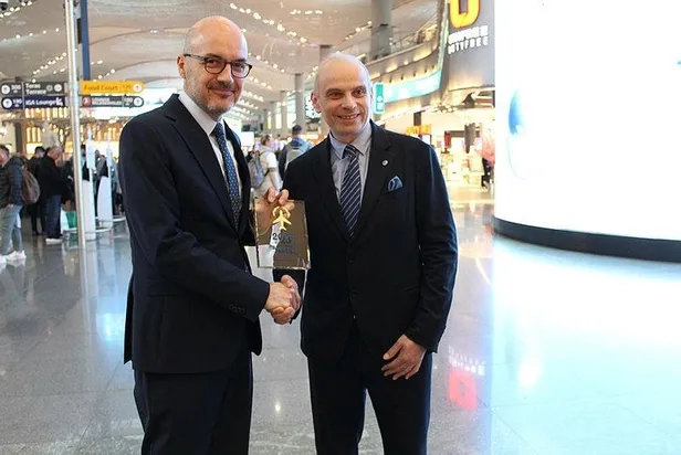 Tören için İstanbul'dan aktarmalı Montreal'a giden Air Transport News (ATN) Genel Direktörü ve Üst Yöneticisi (CEO) Dr. Kostas Iatrou, Samsunlu'ya ödülü İstanbul Havalimanı'nda takdim etti.