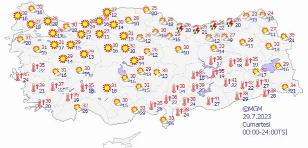 "Meteoroloji Genel Müdürlüğü tarafından yapılan son değerlendirmelere göre: Ülkemizin kuzeydoğu kesimlerinin parçalı ve yer yer çok bulutlu, Doğu Karadeniz kıyıları ve Ordu ile gece saatlerinde Osmaniye çevrelerinin yerel olmak üzere sağanak ve yer yer gök gürültülü sağanak yağışlı, diğer yerlerin az bulutlu ve açık geçeceği tahmin ediliyor."