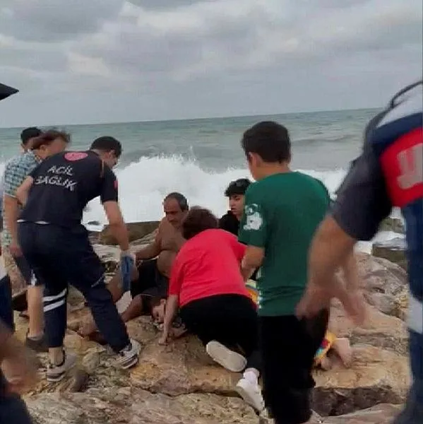 Dalgalar arasında kalan 9 yaşındaki bir çocuğun cankurtaranlar tarafından kurtarılma anı cep telefonu kameralarına yansıdı.
