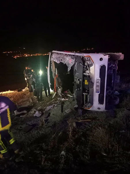 "Kaza sonucunda ilk belirlemelere göre 7 emniyet personelimiz, 2 şoför, 26 düzensiz göçmen yaralanmıştır. Yaralılar çevre hastanelerimize sevk edilmiş olup yapılan tüm müdahalelere rağmen 5 düzensiz göçmen kurtarılamayarak hayatını kaybetmiştir.