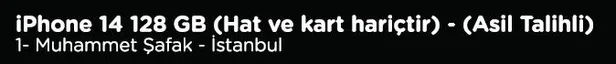 IPHONE 14 128 GB KAZANAN ASİL TALİHLİ