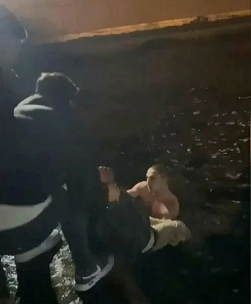 Yolcunun kurtarılma anları cep telefonu görüntülerine yansıdı.