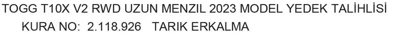 TOGG T10X V2 RWD UZUN MENZİL 2023 MODEL KAZANAN YEDEK TALİHLİ