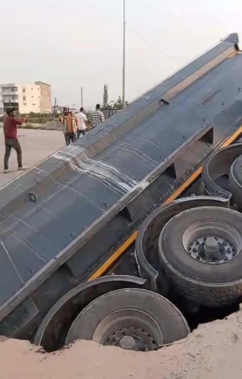 Adana'da görülmemiş kaza! Yol çöktü dev kamyonu içine çekti! Manevra da kurtarmadı: İşte çukura gömülen kamyonun görüntüleri