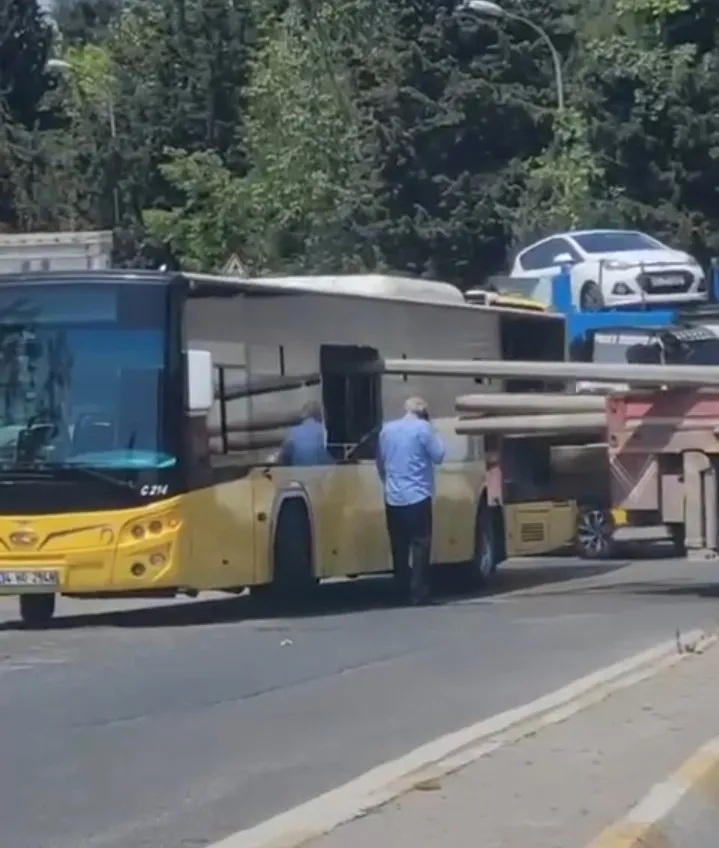 İddiaya göre, 34 BU 4361 plakalı vinç yolda dönüş yaptığı sırada kasasındaki direkler, seyir halinde olan 34 HO 2948 plakalı İETT otobüsünün camından içeri girdi.