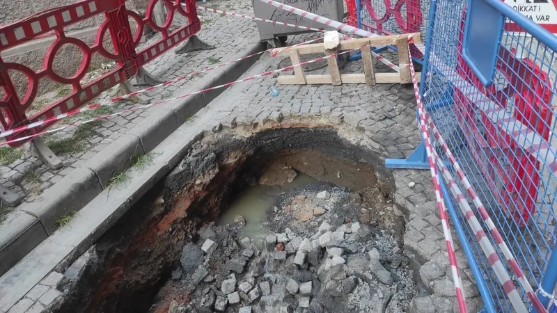 Beyoğlu'nda belediye aracının geçtiği sırada yol çöktü. Yaklaşık 3 metrelik çöküntü nedeniyle yol araç ve yaya trafiğine kapandı.