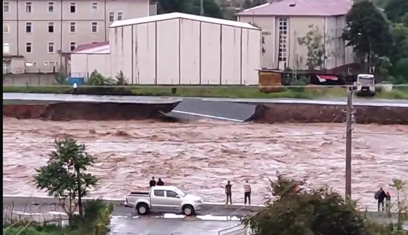 Meteoroloji Genel Müdürlüğü dün Doğu Karadeniz’i turuncu kodla uyarıp kuvvetli yağışın bu akşama kadar devam edeceği için sel ve su baskınlarına karşı dikkatli olunması gerektiğini bildirmişti. MGM’nin uyarılarının ardından Artvin Arhavi ilçesinde köy ile yaylalara ulaşım sağlayan asfalt yol çöktü. Kameralara yansıyan görüntüde Kapisre Deresi'nde su seviyenin yükselmesiyle alt kısmı boşalan yoldaki asfalt bloğunun aniden çökerek, sulara kapıldığı anlar yer aldı. Öte yandan bir çökme de Hopa'da meydana geldi. Meteoroloji'den yağışların ne kadar süreceği hakkında açıklama geldi.