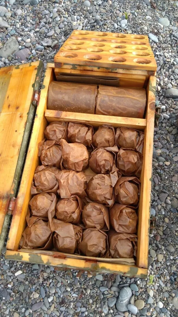 Bomba uzmanının açtığı sandık içinde Rusça yazıların yanı sıra 1987 yılında üretildiği tahmin edilen 20 fünyesiz taarruz tipi el bombası gövdesi olduğu tespit edildi.