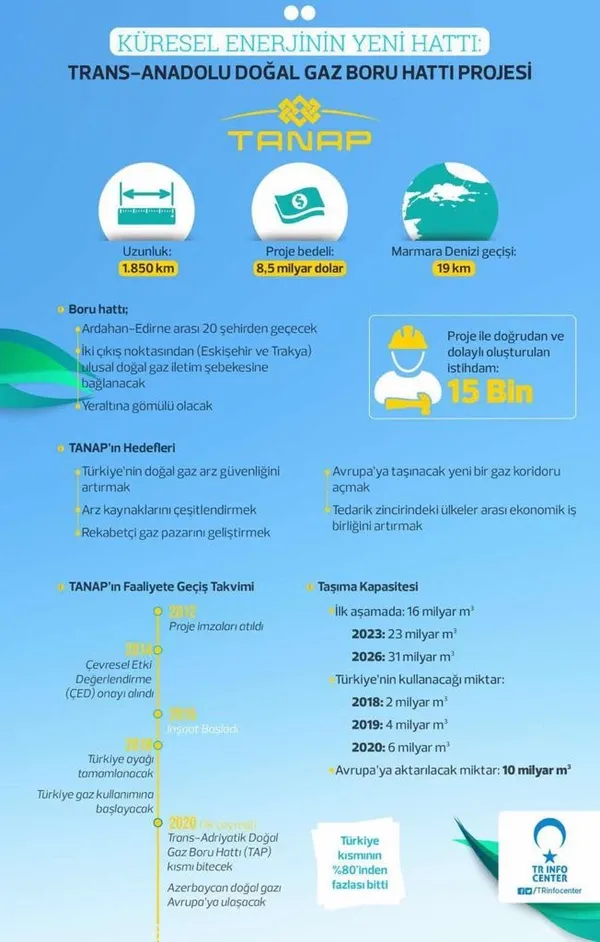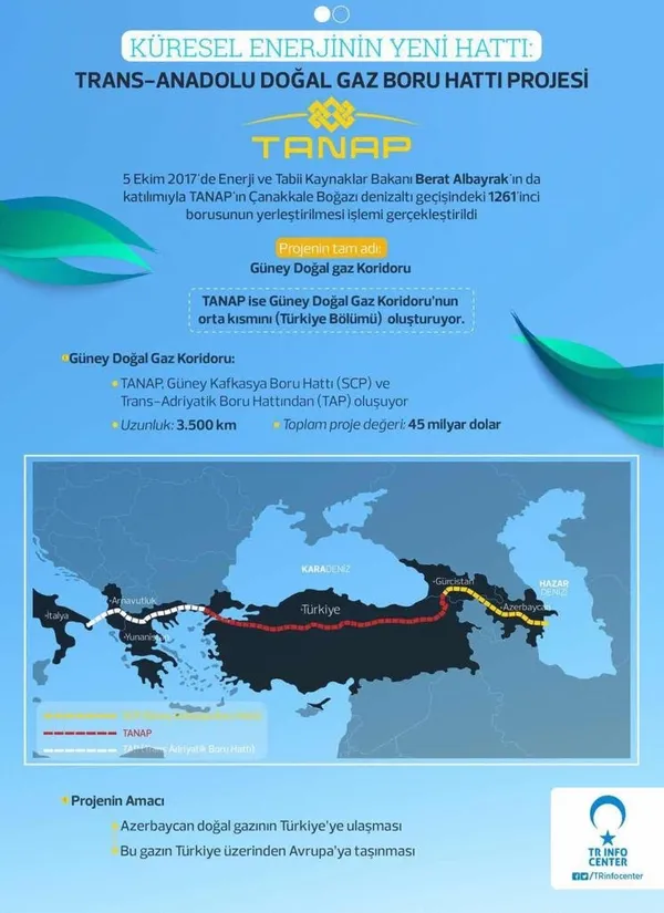 Birbiri ardına yapılan dev anlaşmalar ve milli projelerle yoluna devam eden Türkiye, enerji alanında dünyaya damgasını vurdu. Enerjide dışa bağımlılığı azaltacak yerli ve milli projelerine hız veren Türkiye, TANAP ve Türk Akımı gibi dev projelere de imza atıyor.