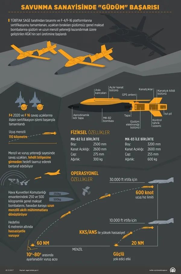 Milli imkanlarla geliştirilen ve üretilen Kanatlı Güdüm Kiti (KGK) silah sisteminin tanıtım töreni, Türkiye Bilimsel ve Teknolojik Araştırma Kurumunda (TÜBİTAK) gerçekleştirildi.