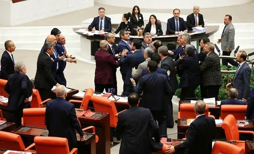 Zeybekci'nin sözleri CHP'lileri rahatsız etti. CHP'li vekiller kürsüye yürümek istedi, Meclis'te arbede çıktı.