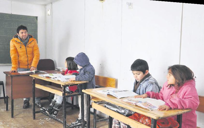 Cengiz öğretmen, köyde yapımı devam okul inşaatı nedeniyle öğrencilere konteynırda ders vermeye başladı.