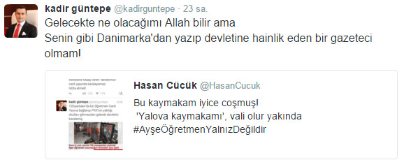 Paralel medyanın yayın organı olan Zaman gazetesinin Danimarka muhabiri Hasan Cücük ise Güntepe'nin bu sözlerine "Bu kaymakam iyice coşmuş! 'Yalova kaymakamı', vali olur yakında" şeklinde seviyesiz bir yorumda bulundu.